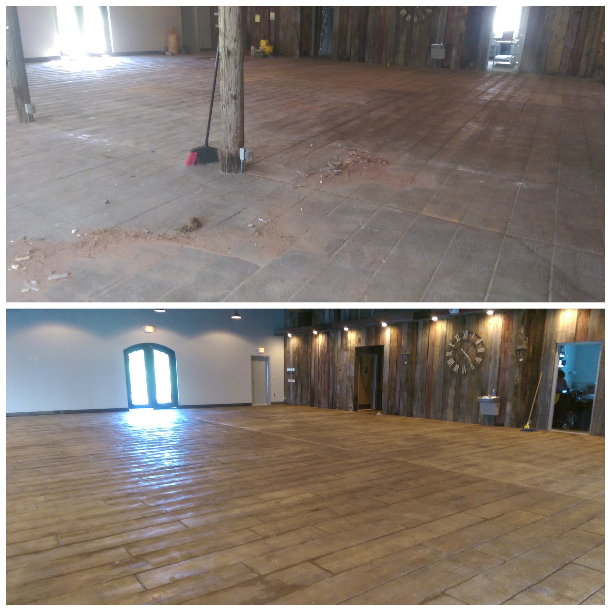 We had a construction cleanup job in Springfield this week and I wanted to show you a before and after picture. The floor pictured is stamped concrete made to look like barnwood.